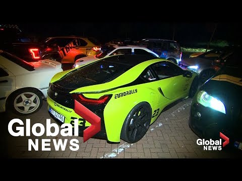 German police stopped more than a hundred sports cars taking part in an illegal road race on the A20 motorway on Friday. The German motorway, the autobahn, is renowned for having no speed limits in certain parts, but police had been alerted by other drivers alarmed by the numbers of cars driving dangerously at speeds of up to 250 kilometres per hour (155 miles per hour).