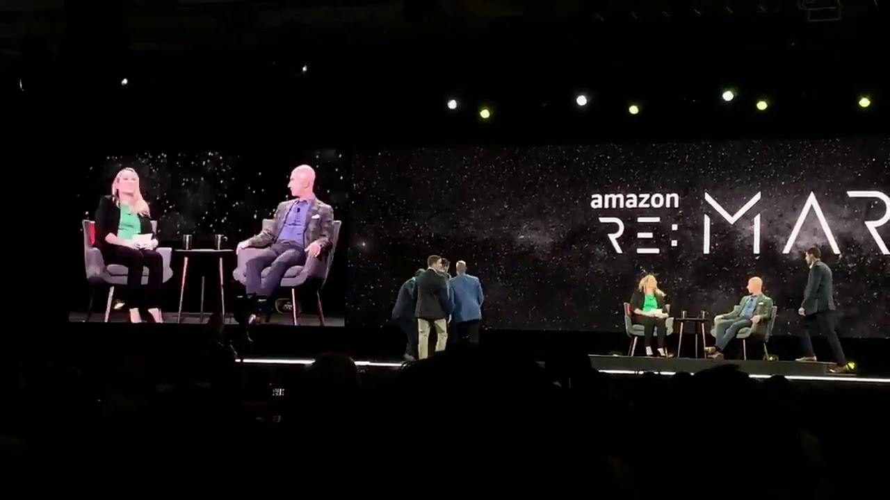 A video clip provided by a GeekWire reader shows animal rights activist Priya Sawhney getting on stage during Amazon CEO Jeff Bezos' fireside chat at the re:MARS conference in Las Vegas.